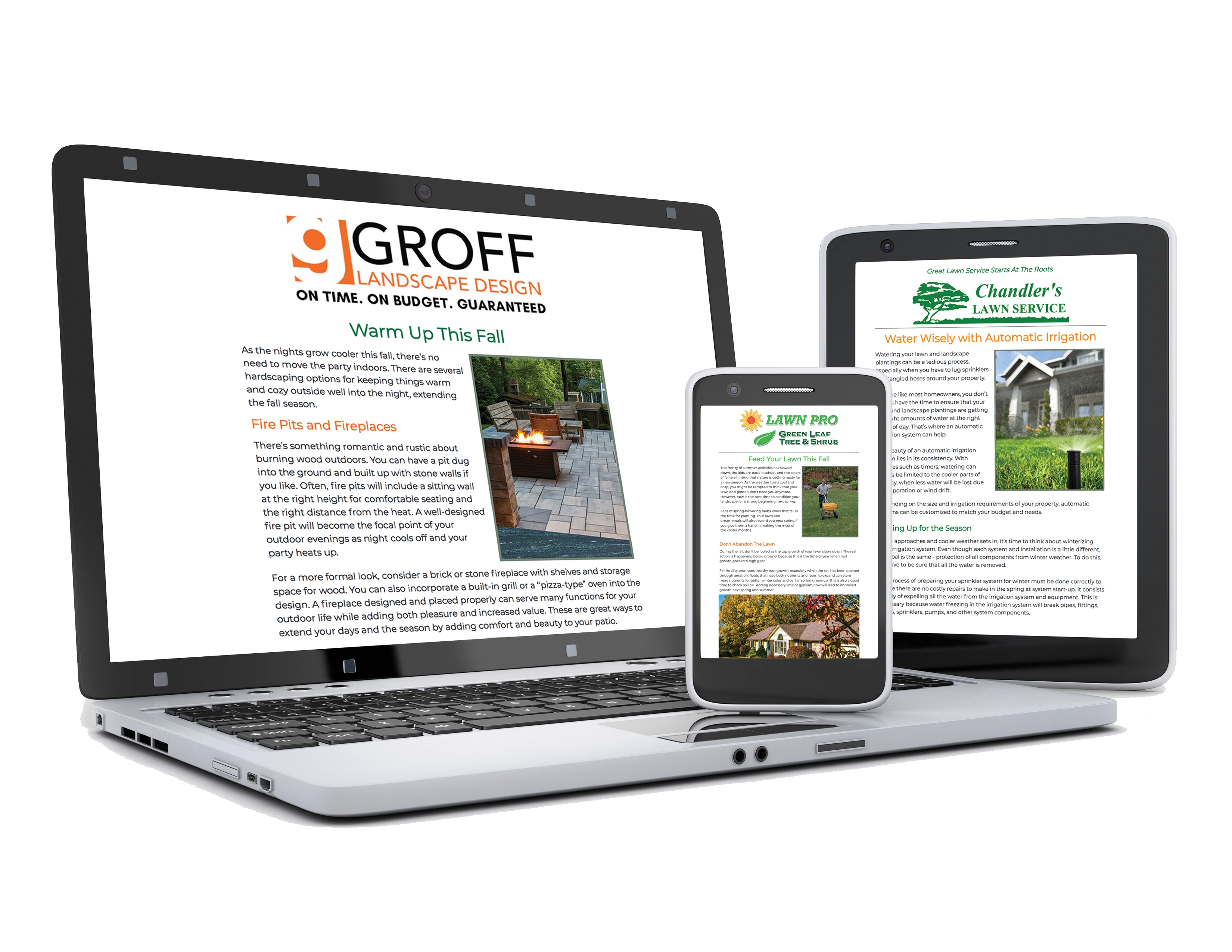 Our e-mail marketing program is built on 35 years of experience communicating on behalf of lawn & landscape contractors like you. We will tailor a communication plan to your specific business and service offerings, ensuring that you stay in touch with your clients and prospects all season long.