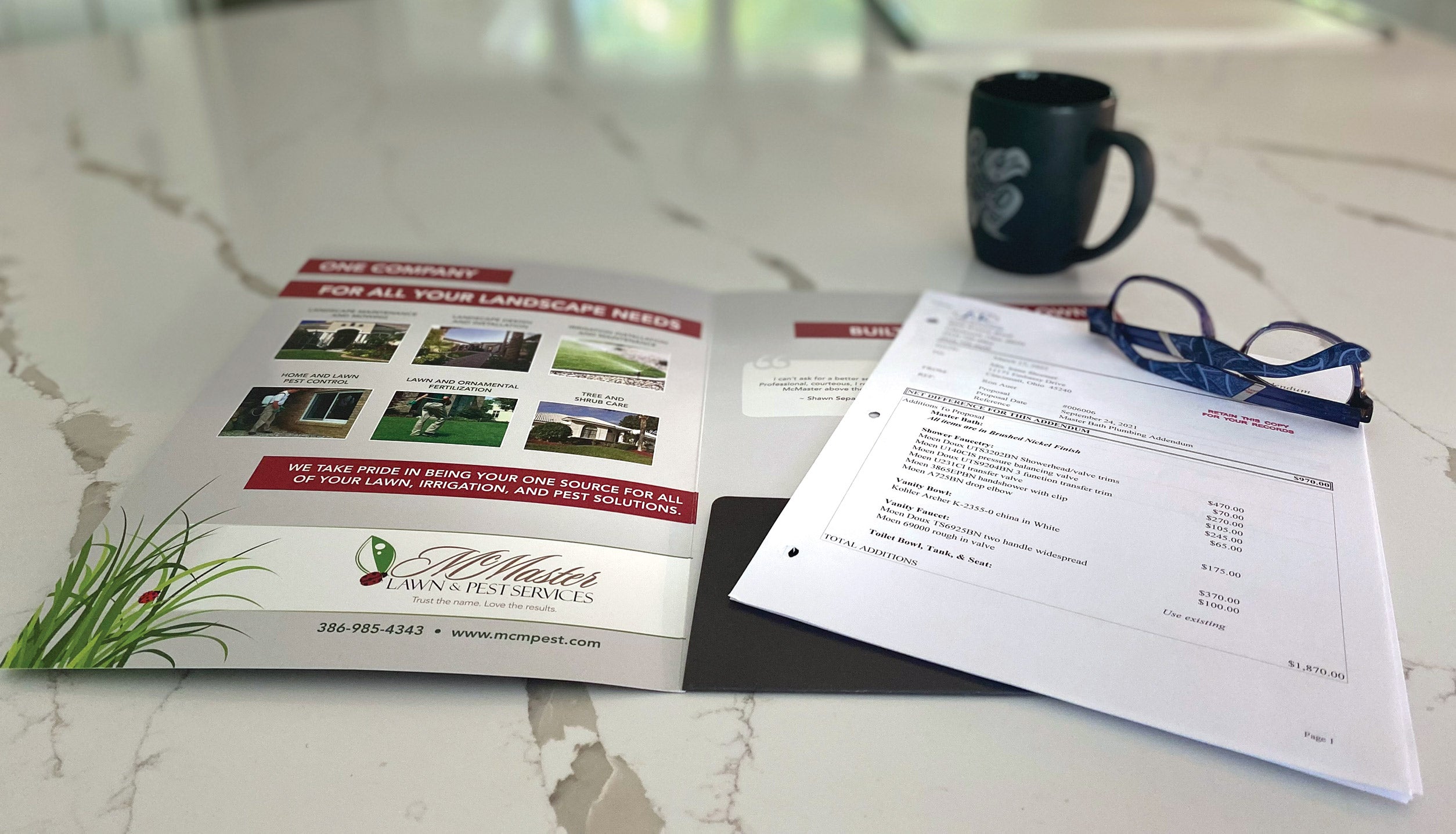 Delivering proposals in a presentation folder does several things for you. Wrapping your estimates in a branded folder communicates your capabilities and professionalism - and it expands their mindset beyond the numbers on your proposal.