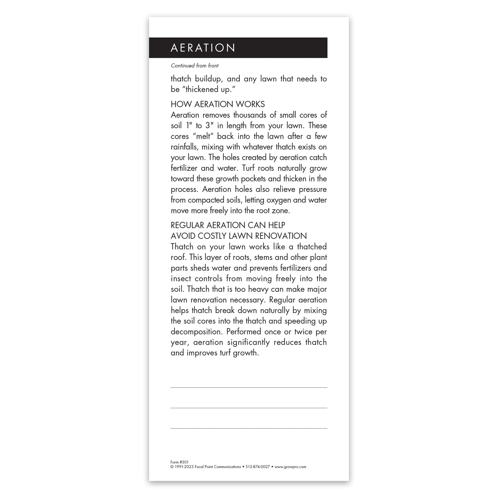 The illustration on the front of this Grow Note provides a great visual of the aeration process. Use it to show your customers and prospects just how valuable your aeration service really is.