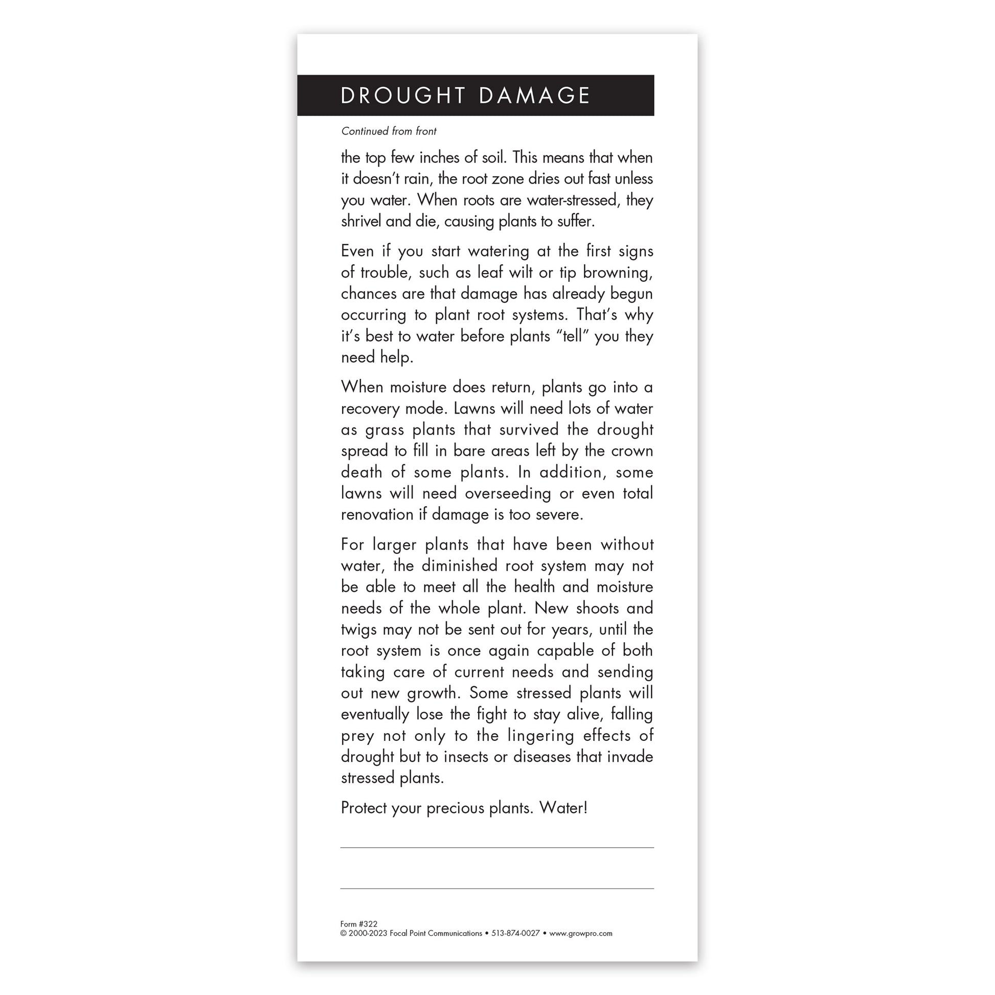 Is hot, dry weather doing a number on your customers’ lawns and landscape plants? If so, this Grow Note is perfect for letting them know how important regular watering is for recovery.