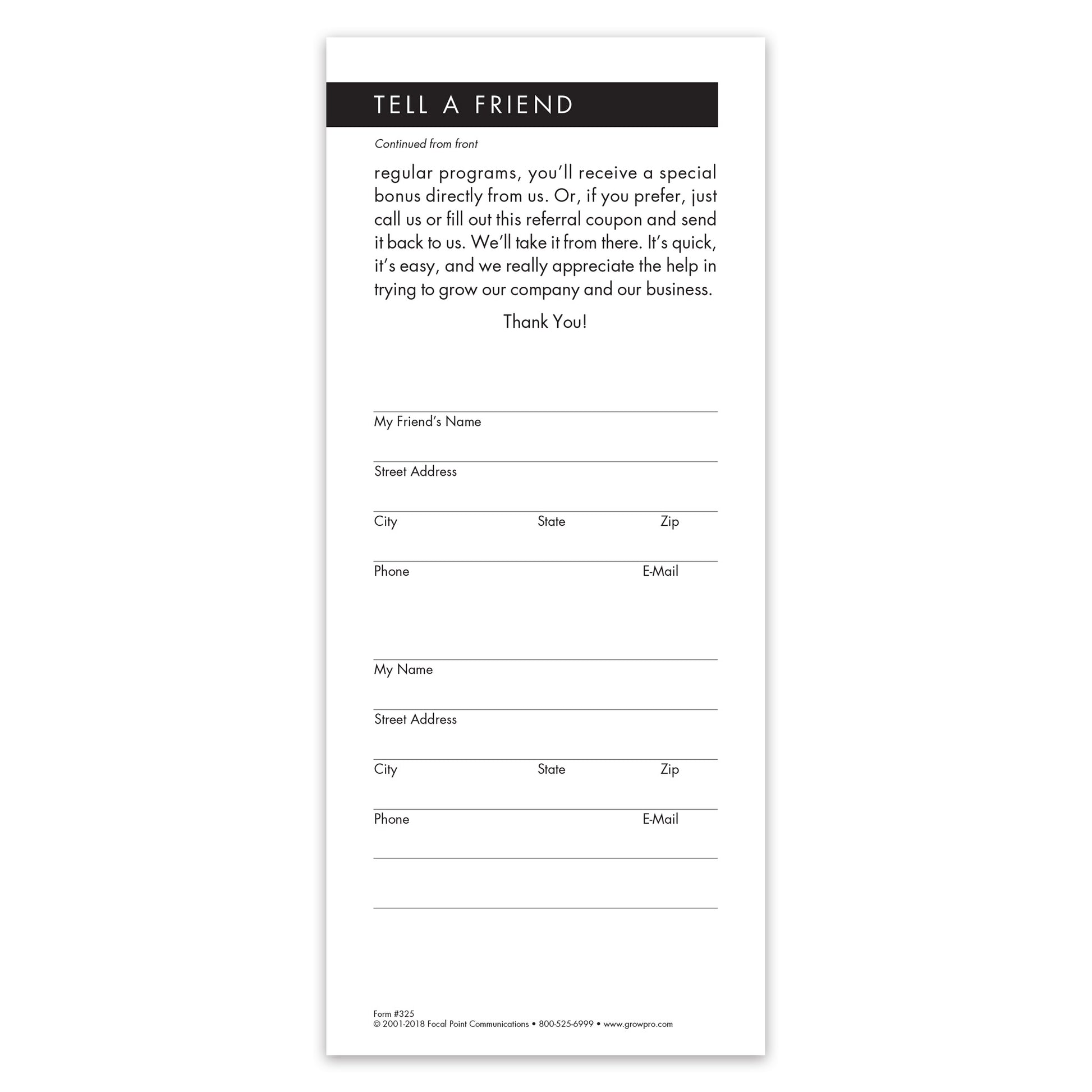 Ask your satisfied customers to spread the word about your services! This Grow Note is an easy way to solicit new referrals, letting your customers know that you’ll reward them for any new business they send your way.