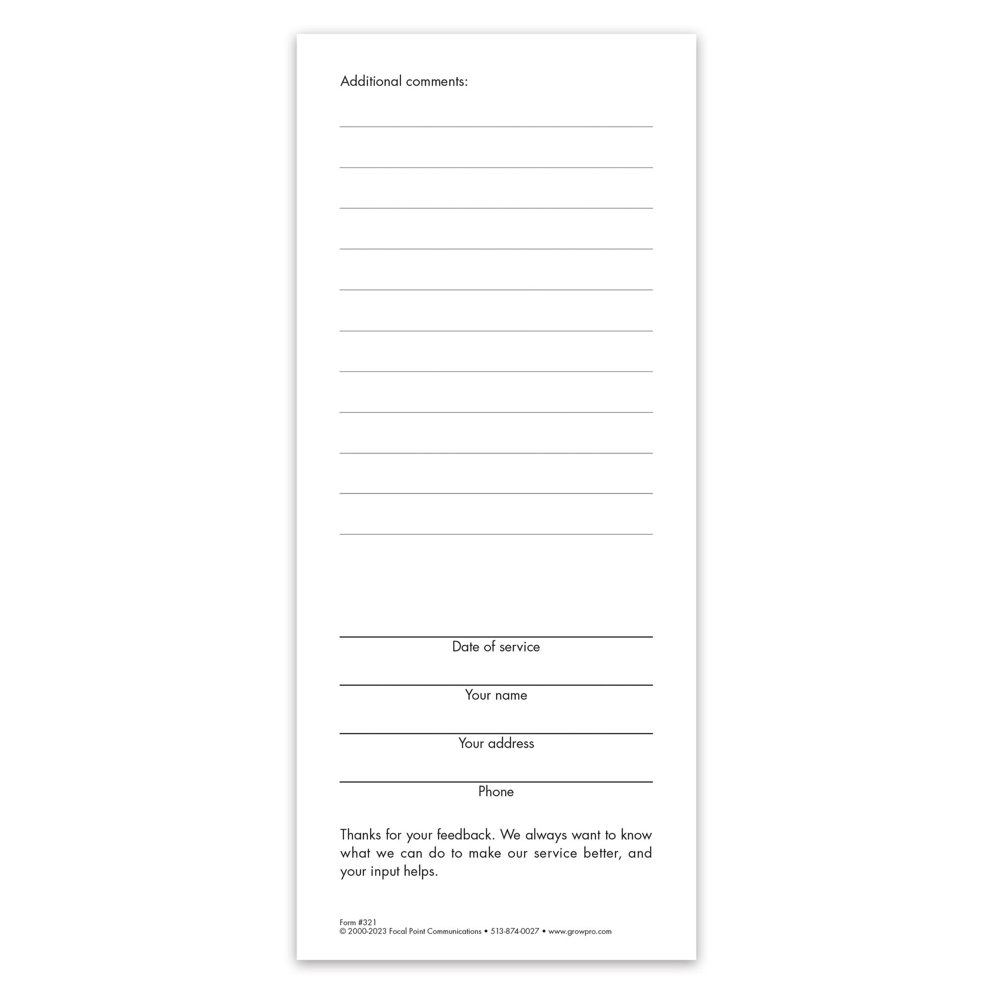 Your customers will appreciate the opportunity to provide you with their feedback. Use this Grow Note to improve communications and improve customer relationships.
