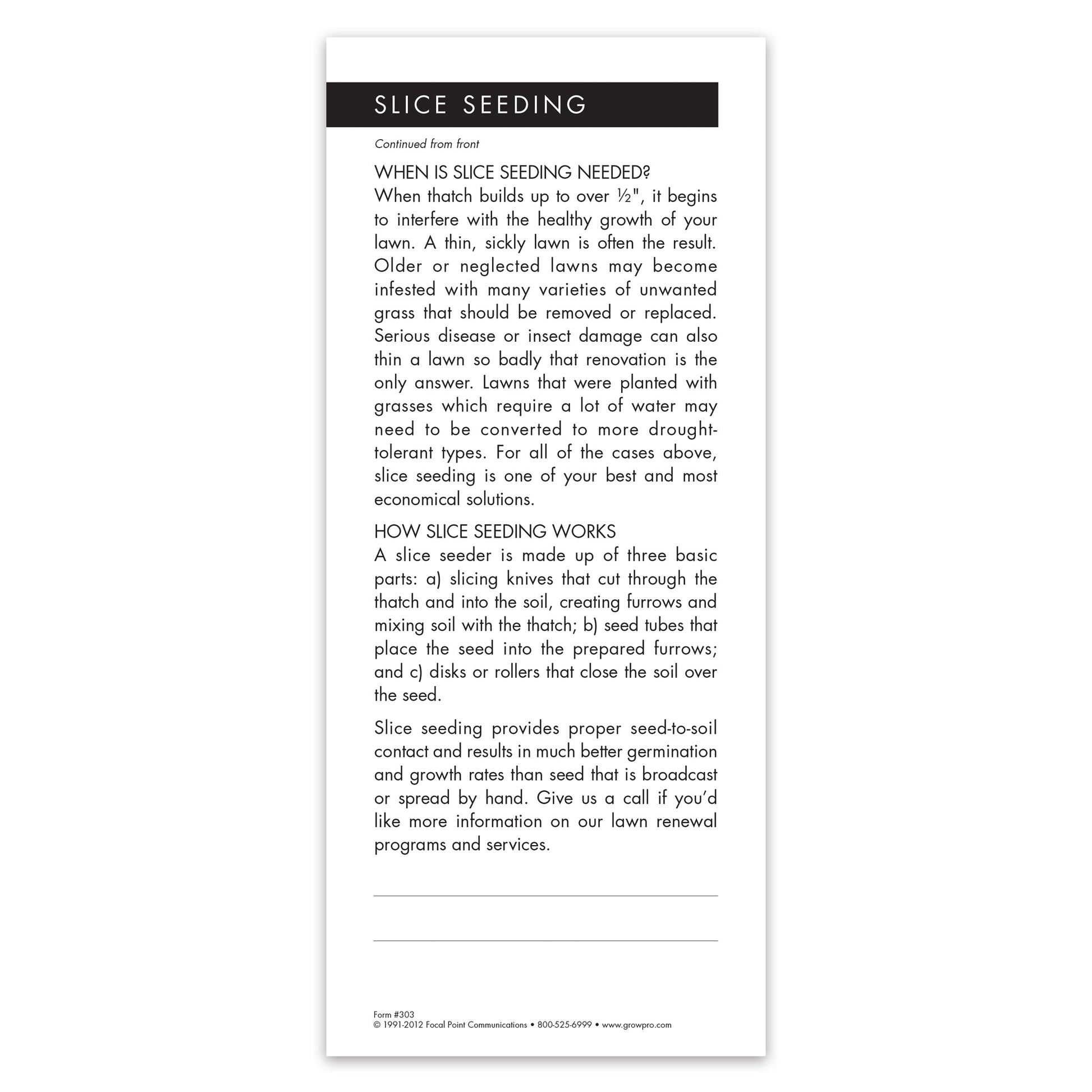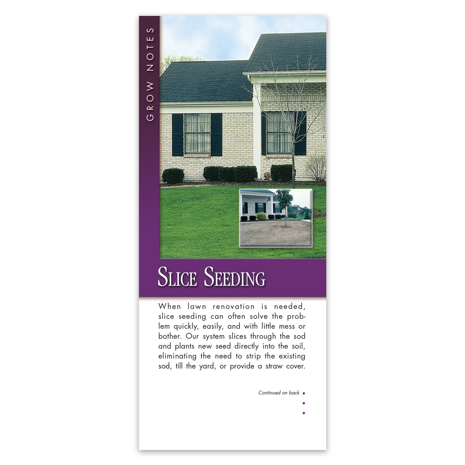 The before and after photos on this Grow Note show customers and prospects what a difference slice seeding can make. Use it whenever you want to promote your lawn renovation services.
