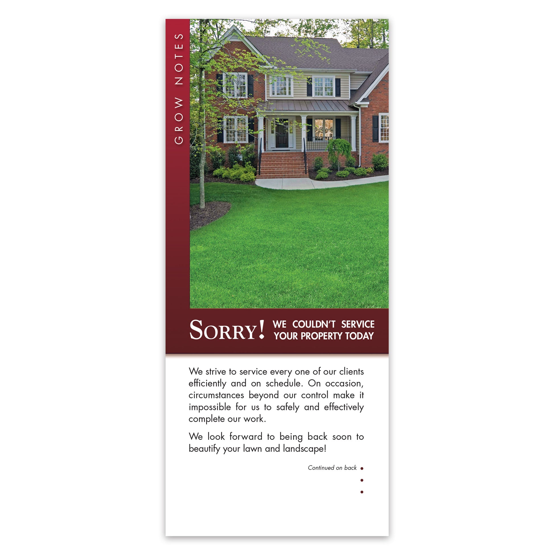 Use this handy Grow Note to explain to your customer why their service could not be completed.